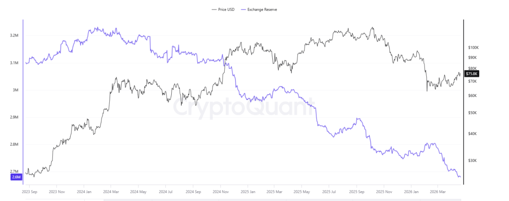 2. Exchange reserves are at all-time lows