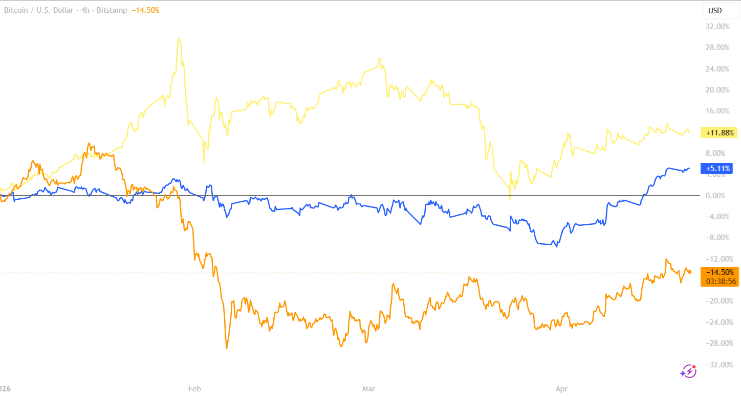 Bitcoin, however, is still lagging. While price has bounced from the lows, it remains down on the year, continuing to trade more like a risk asset than a hedge in the current environment. Overall, capital is still favouring traditional markets, with crypto yet to fully reclaim momentum.