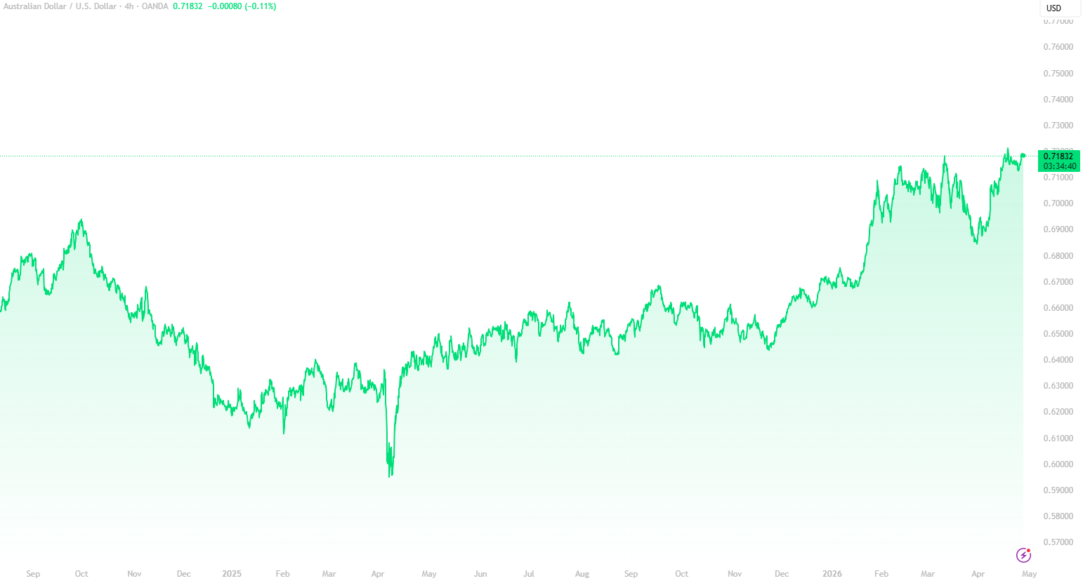 AUD/USD has been in a clear uptrend since early 2025, now trading around 0.718 USD, its strongest levels in years. The move reflects improving sentiment toward the Australian economy, stronger commodity pricing, and expectations that Australian interest rates could remain higher for longer relative to other developed markets.
