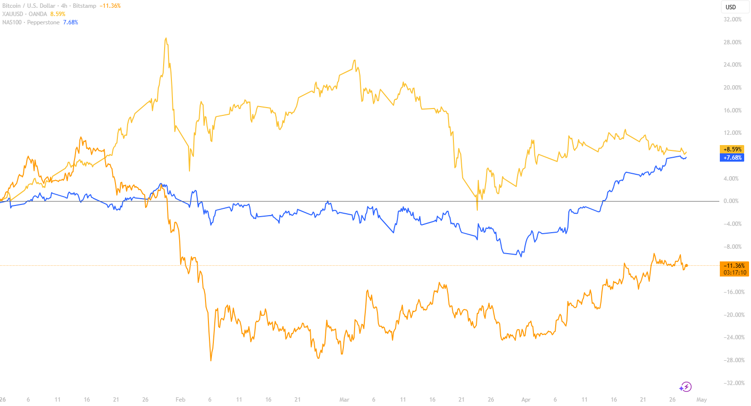 Source: Tradingview, BTC, GOLD, NASDAQ