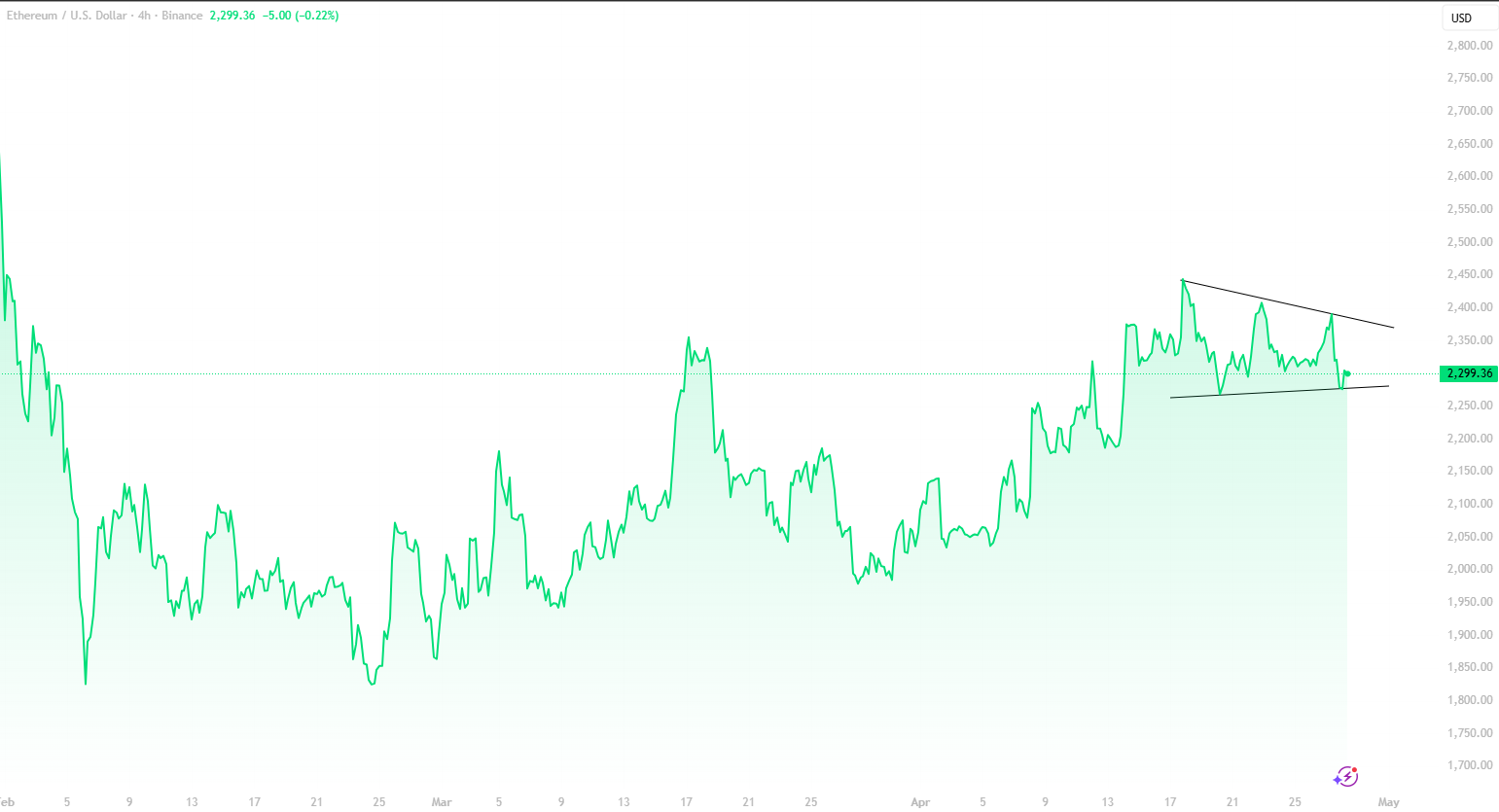 Ethereum has been consolidating near local highs and is currently forming a wedge pattern.