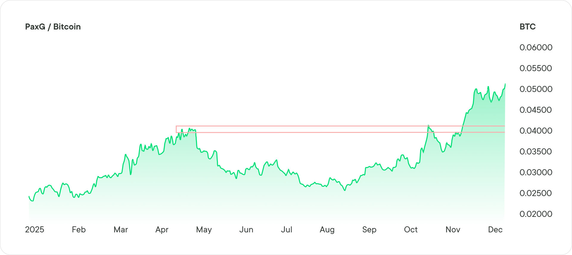 As this chart highlights, PAXG has broken out and outperformed BTC in 2025, driven by rising gold prices and growing interest in tokenised real-world assets.