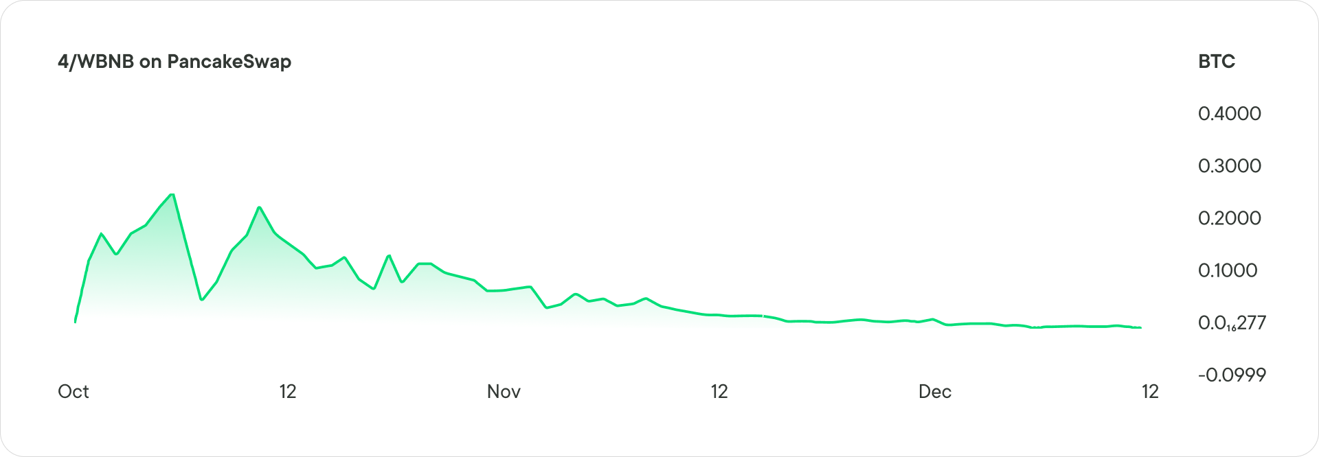 Like most memes, 4 flew high fast and came back down just as quickly. The token is now about 90% off its peak.