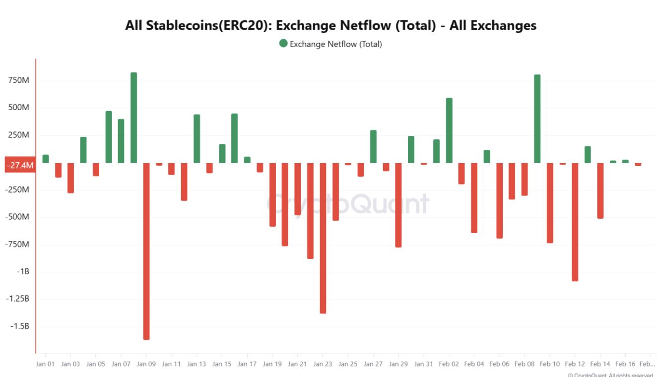 Stablecoin netflows have mostly been negative through 2025, meaning more stablecoins are leaving exchanges than entering. That can mean a few things: