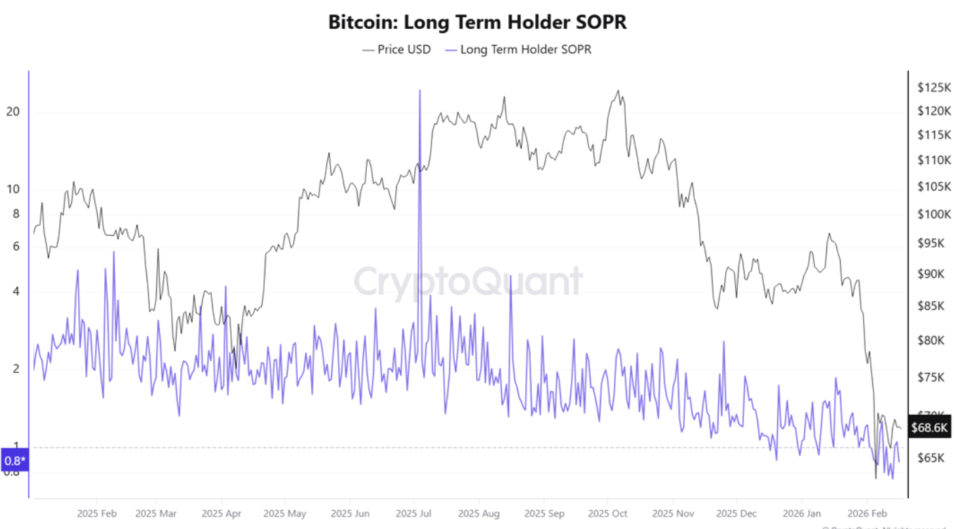 Long-term holders usually sell into strength, not weakness. When they start realising losses, it typically signals broad stress across the market rather than simple short-term volatility.