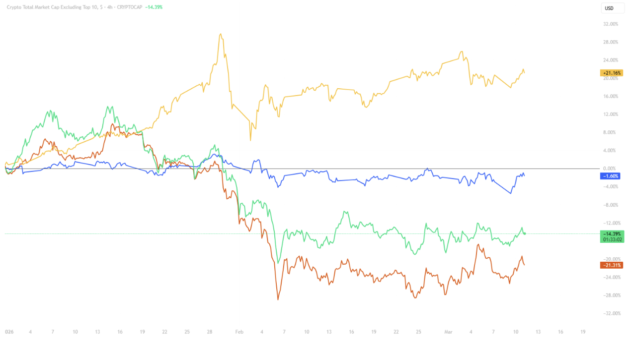 Source: Tradingview Total ex top10, GOLD, BTC, NASDAQ
