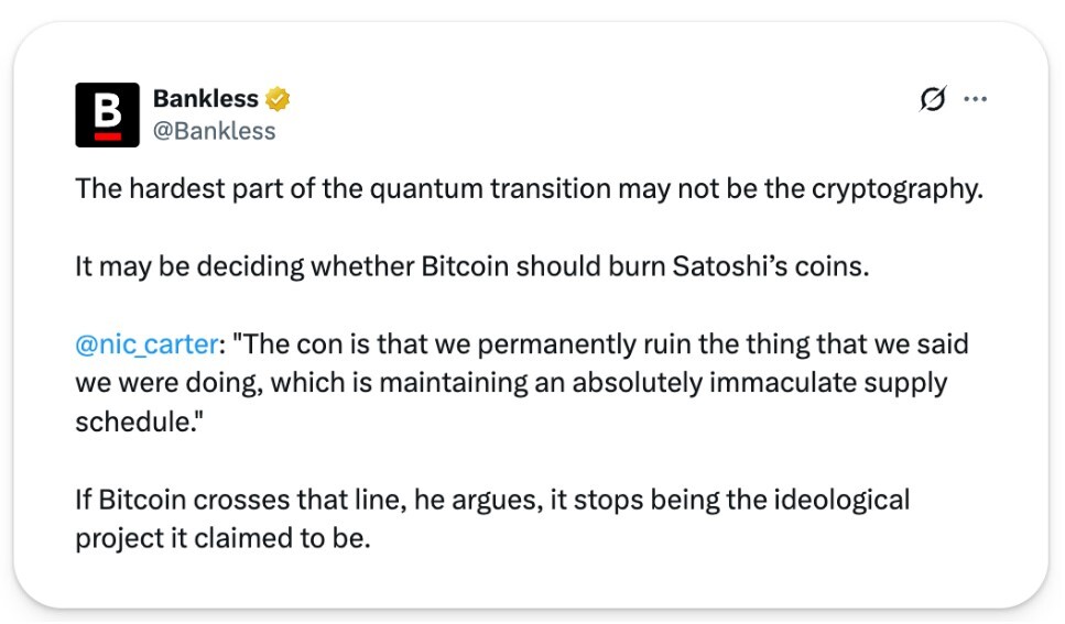 Roughly 6.9 million BTC sits in wallets with exposed public keys. Around 2.3 million of that is believed to be lost or tied to early wallets.